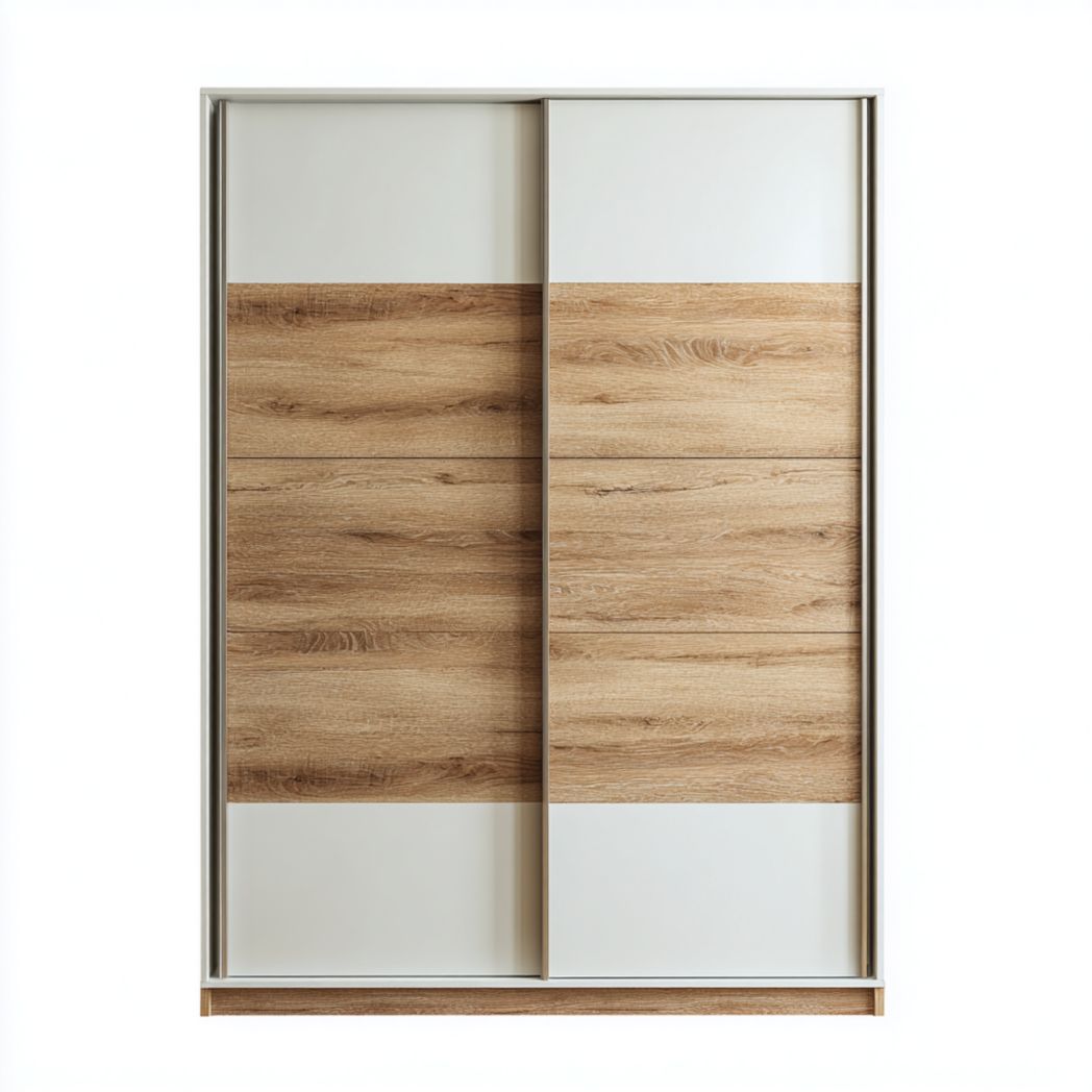 Armoire deux portes coulissantes en bois de chêne et panneaux blancs