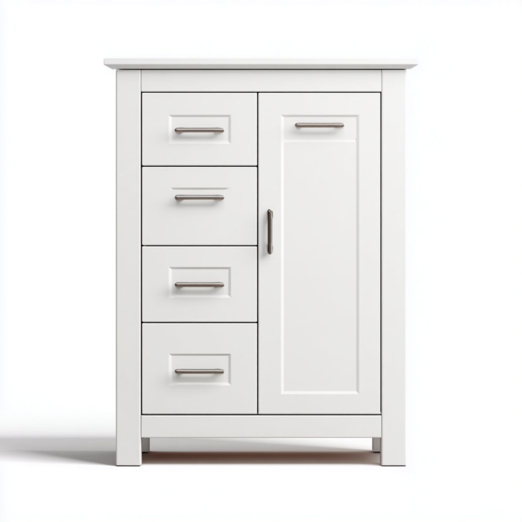 Commode blanche avec 4 tiroirs et 1 porte latérale